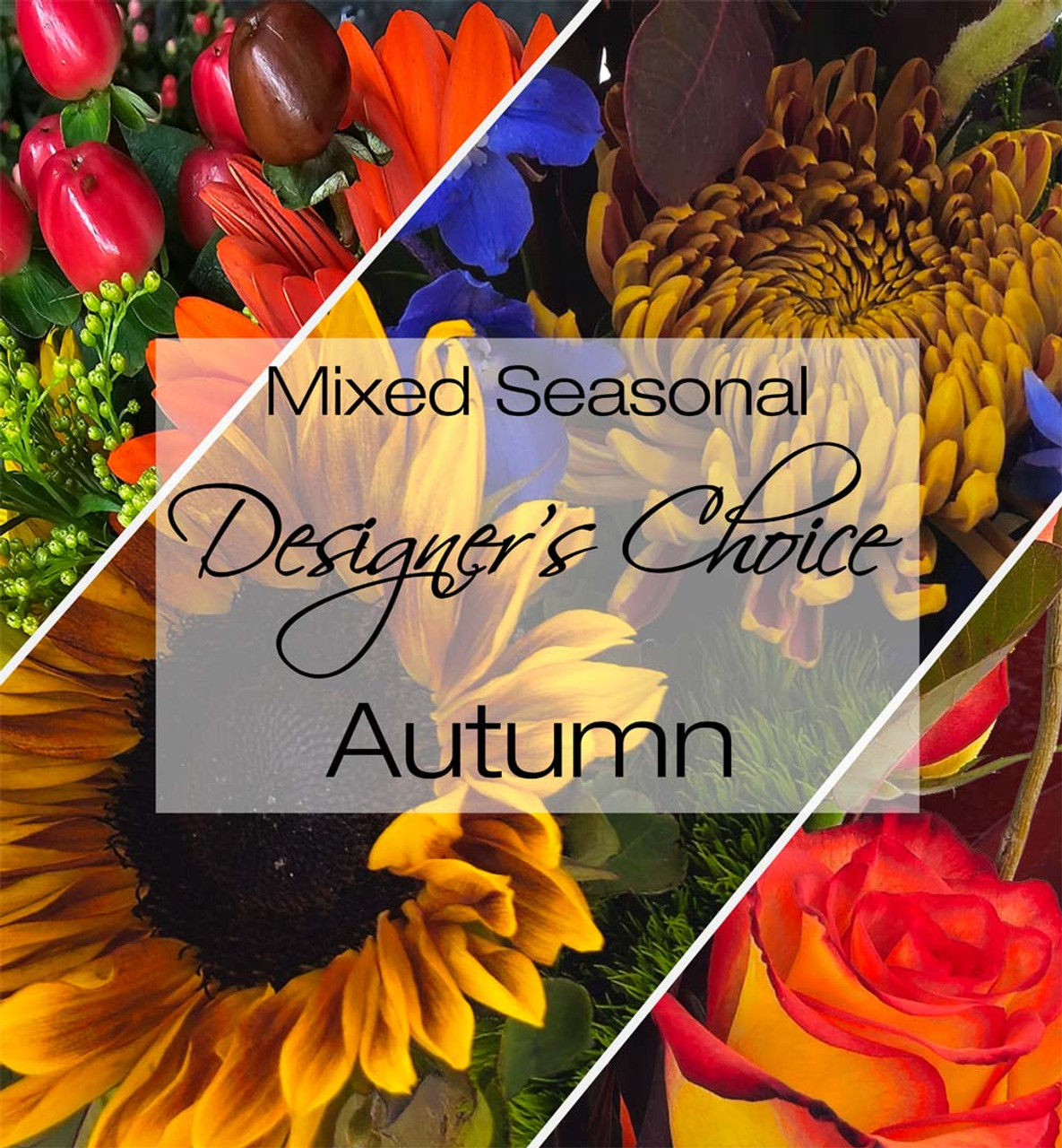 Dive into the season with our Bright Fall Bouquet. Boasting deep crimsons, radiant oranges, and sunlit yellows reminiscent of a fall foliage panorama, each bouquet is uniquely handcrafted by our expert designers, ensuring no two are exactly alike. Delight in a selection of classic autumnal flowers like chrysanthemums, sunflowers, celicia, and asters, all accentuated with rustic touches of dried wheat stalks and berries. Our designs are custom and the blooms and containers will range widely. We use the freshest products available from local growers, domestic and exotic farms to create the perfect floral combination for the recipient! The Petite size is perfect for an end-table. The Standard size is suitable for a hospital room or coffee table. The Deluxe is appropriate for a kitchen island or desk. The Premium makes a lovely centerpiece, and if you are looking for the "Wow" factor, choose either our Luxe or Showstopper sizes! Any special requests? Please make note of them in the "Special Design Instructions" section of your order to help us convey your vision. The flowers pictured may or may not be included in the finished product.
