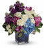 Reminiscent of a beautiful impressionist portrait, the deep purples, fresh blues and crisp whites of this stunning bouquet make an unforgettable artistic statement. What a lovely surprise on any occasion!