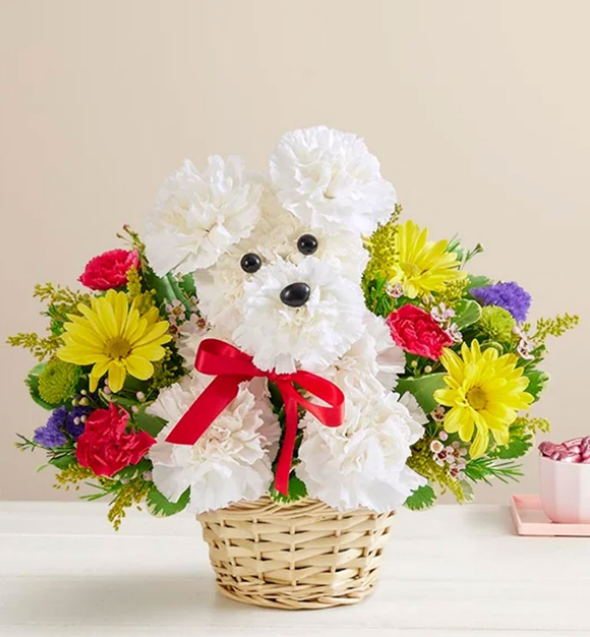 Unleash smiles with our original a-DOG-able arrangement! Hand-designed in a charming basket, this customer favorite creation makes a great gift for pet lovers or anyone who could use a little puppy love in their life.
