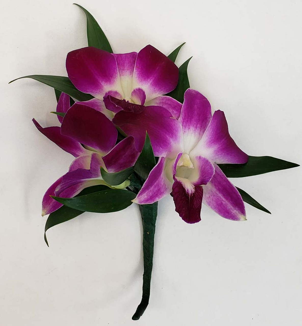 Start by choosing the base orchid color of your boutonniere - choose from white or purple. The size and color of individual flowers may vary from pictured due to growing season, variety or availability. Dendrobium orchid boutonnieres do not come with baby's breath. Greenery used may vary seasonally or due to availability.