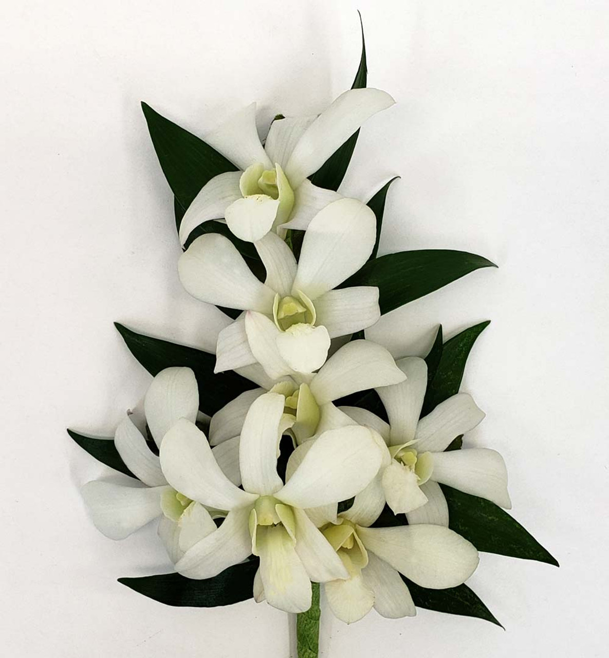Create a custom dendrobium orchid wrist corsage for your formal event.