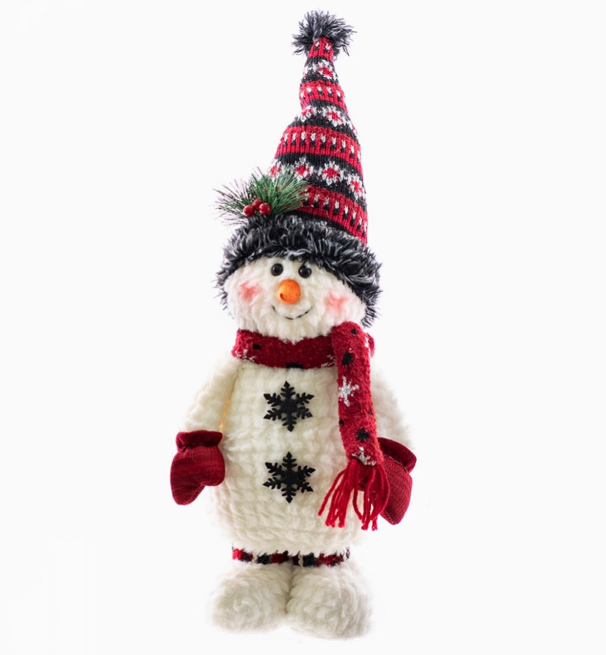 Meet Sky the Snowman, the perfect addition to your holiday décor! Full of charm and winter cheer, Sky features a fluffy, textured white body adorned with two embroidered snowflakes for a classic frosty look. His bright smile, carrot nose, and rosy cheeks bring irresistible personality to any room.