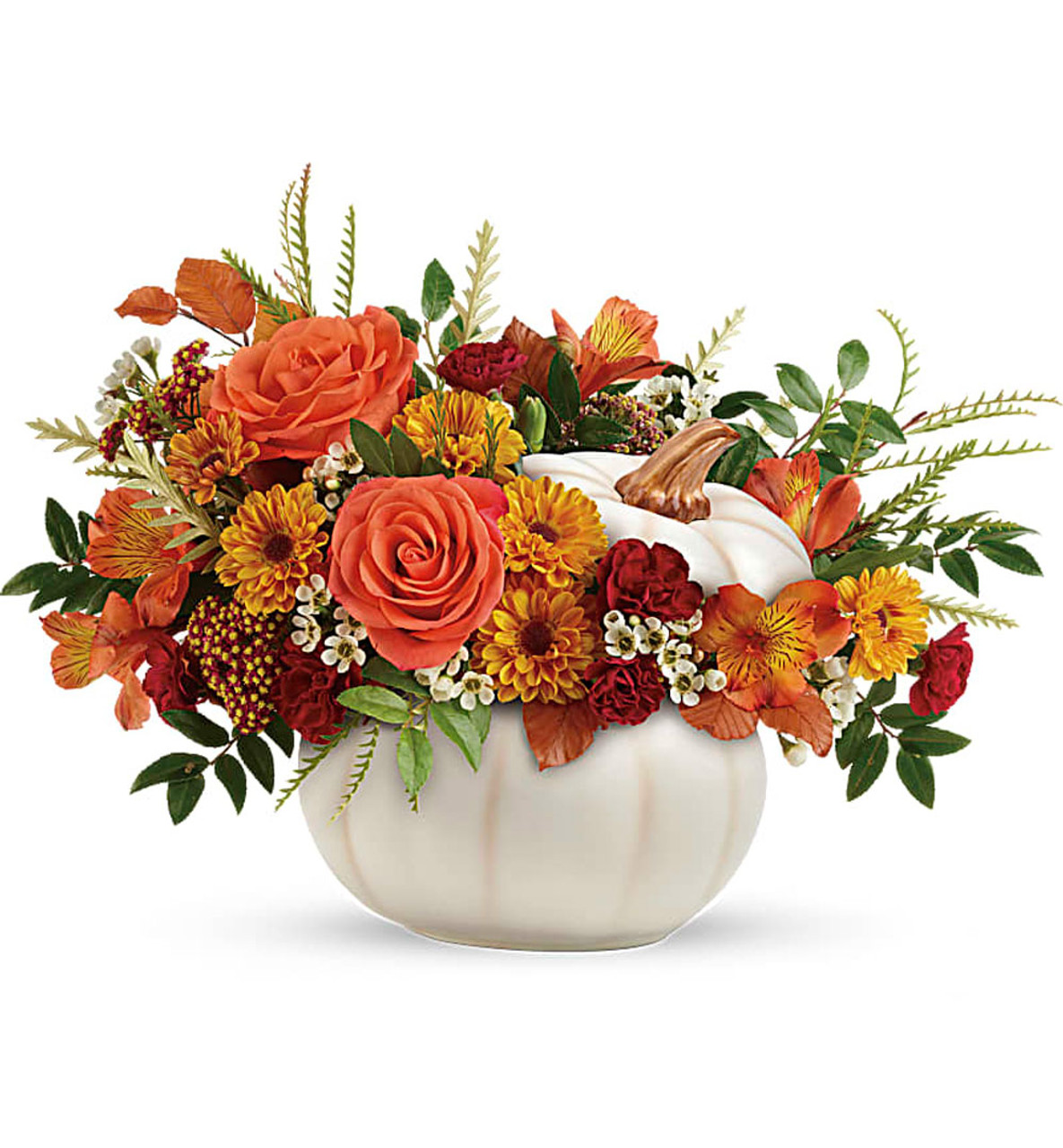 - Delivered in Teleflora's Enchanted Harvest Pumpkin.