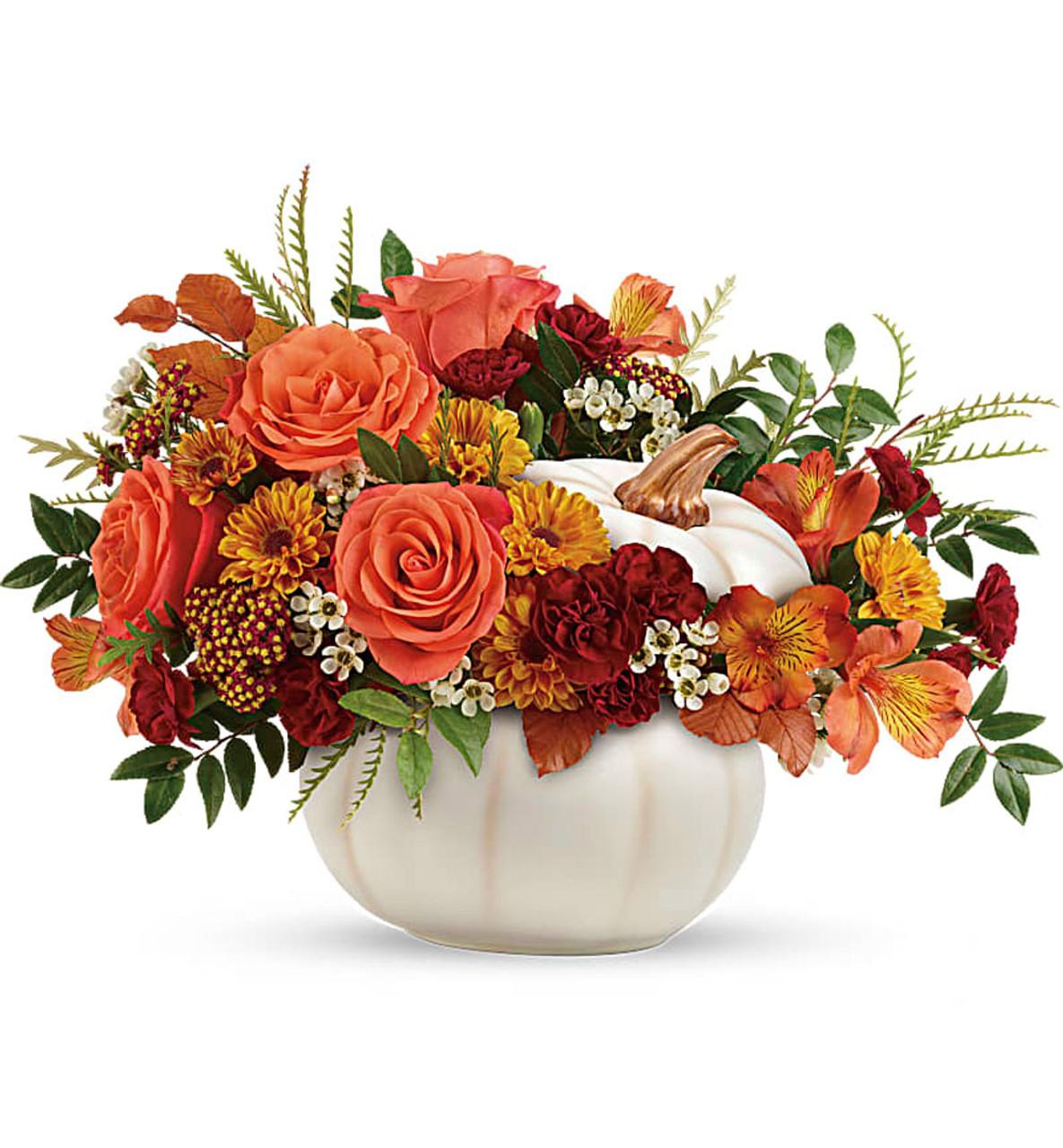 - Delivered in Teleflora's Enchanted Harvest Pumpkin.